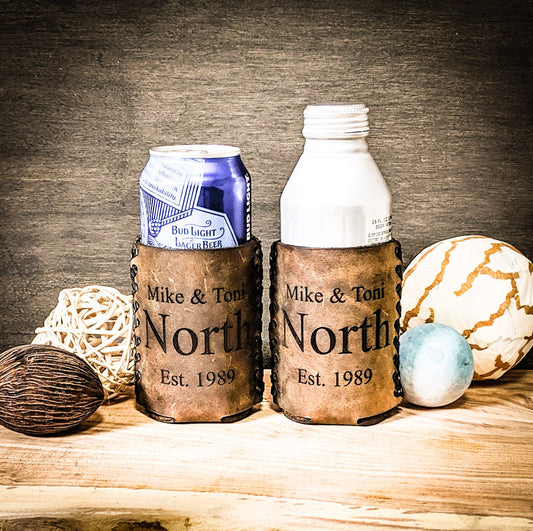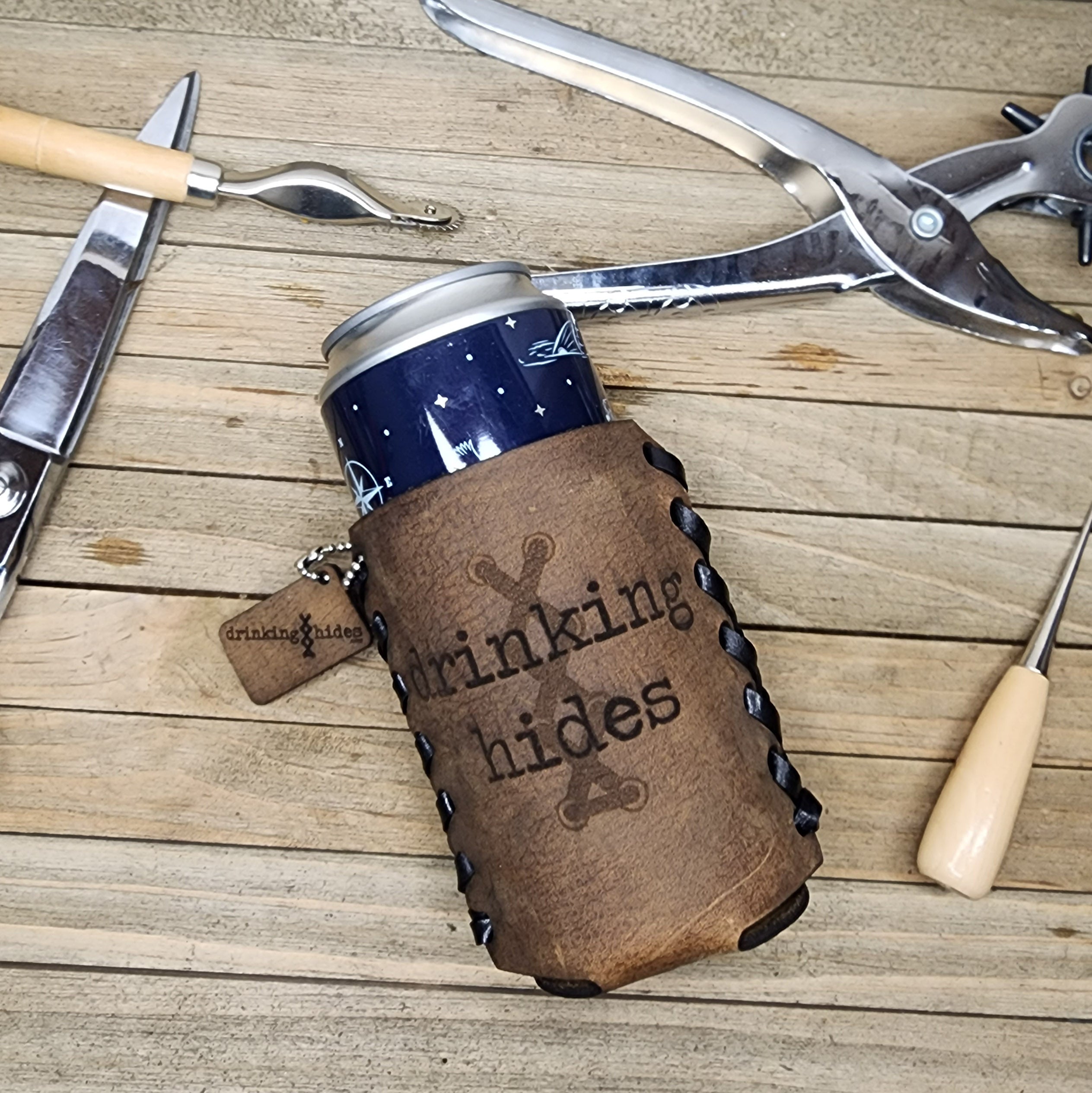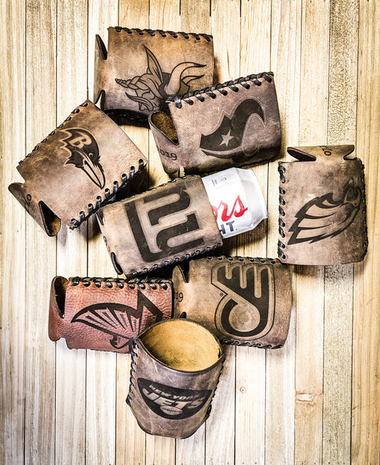 You know how a good drink just hits different? Well, imagine that, but with a side of personalized pizzazz. We're the crafters of custom leather sleeves, coozies, or cozies (call 'em what you want!) for every kind of drinking buddy – be it a can, bottle, glass, or liquor bottle. And guess what? Everything we make is out of 100% oil-tanned leather, sourced from the cool corners of Oregon and Maine in the United States.